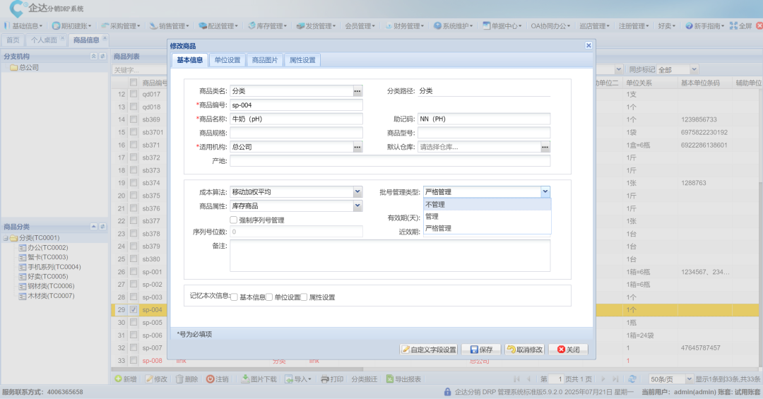 部分业务可选批号,适配多场景混合管理。 - 强制模式(严格管理)